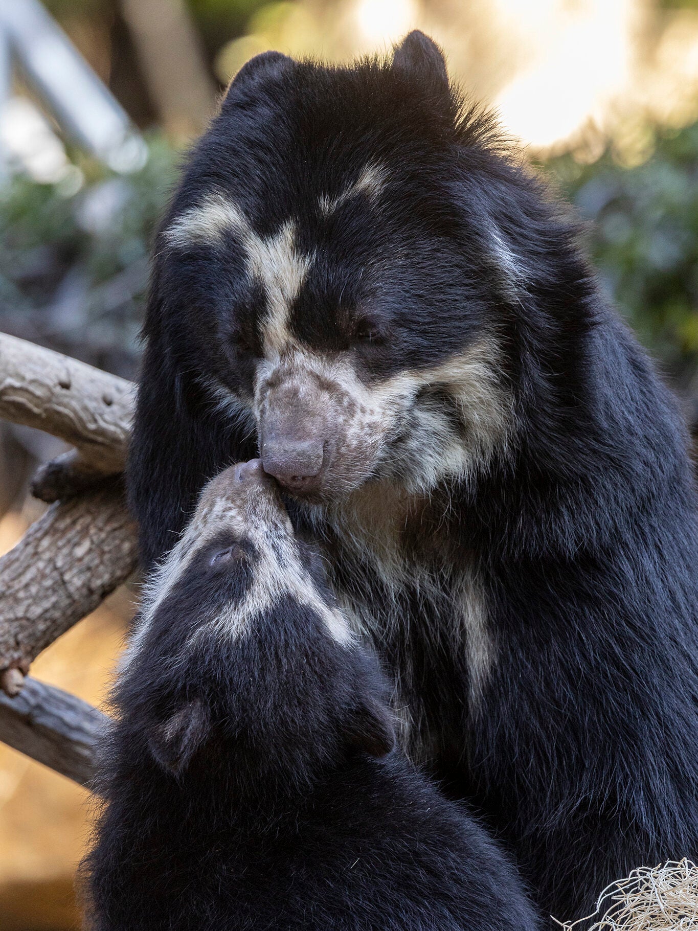 The cubs were named in the Indigenous Quechua language, which is spoken in the South American countries of Colombia, Ecuador, Peru, Bolivia, and Argentina, where Andean bears live. The male cub is named Ransisku (pronounced ron-SIS-koo), the Quechuan form of “Francis,” and the female is Suyana (soo-YA-na), Quechuan for “hope.” Their names were chosen by Cathy Stiefel and Keith Behner, namesake donors for the Stiefel-Behner Research Program at Cocha Cashu Biological Station in San Diego Zoo Wildlife Alliance’s Amazonia Conservation Hub.