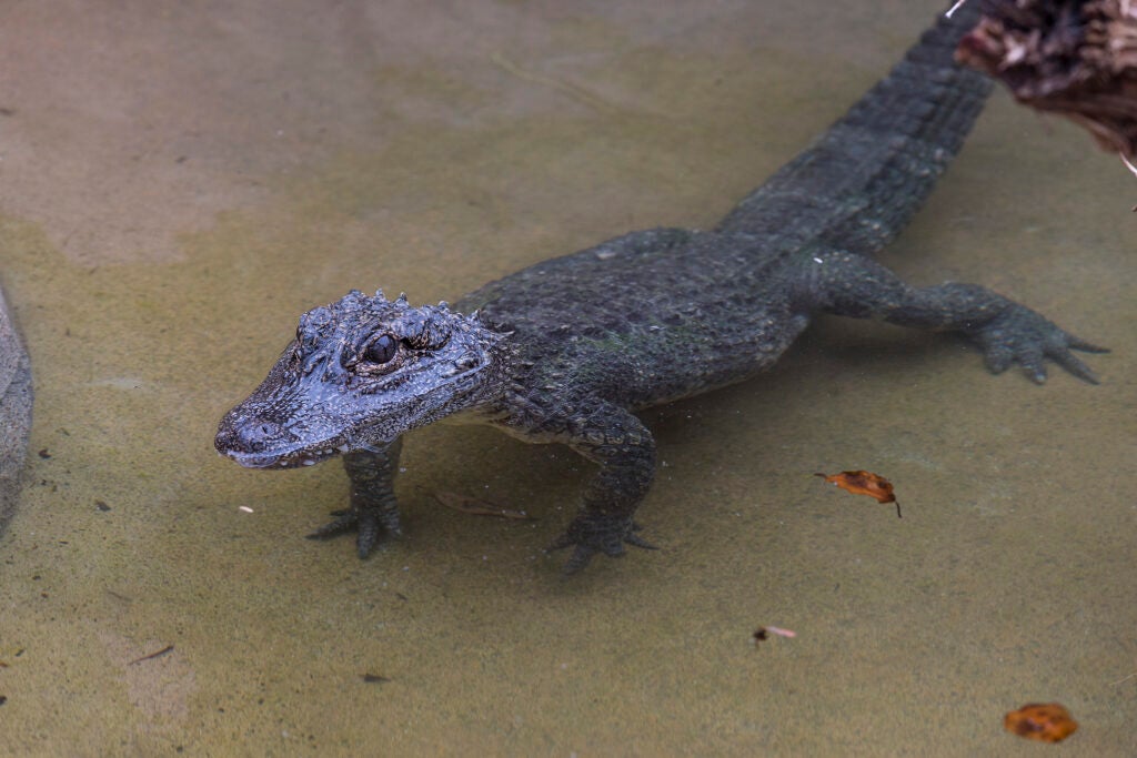 While there has historically been heavy exploitation of caimans for their meat and especially their hides, caiman farms (for leather) have largely displaced poaching. But illegal wildlife trafficking is still a problem, as young caimans are targeted for the pet trade. Kim warns, “They don’t make good pets.” Eventually, owners of illegal caimans find that out for themselves. “Occasionally, we get calls from U.S. Fish and Wildlife, when they find a caiman in a pond or a park, to provide care or a home.”