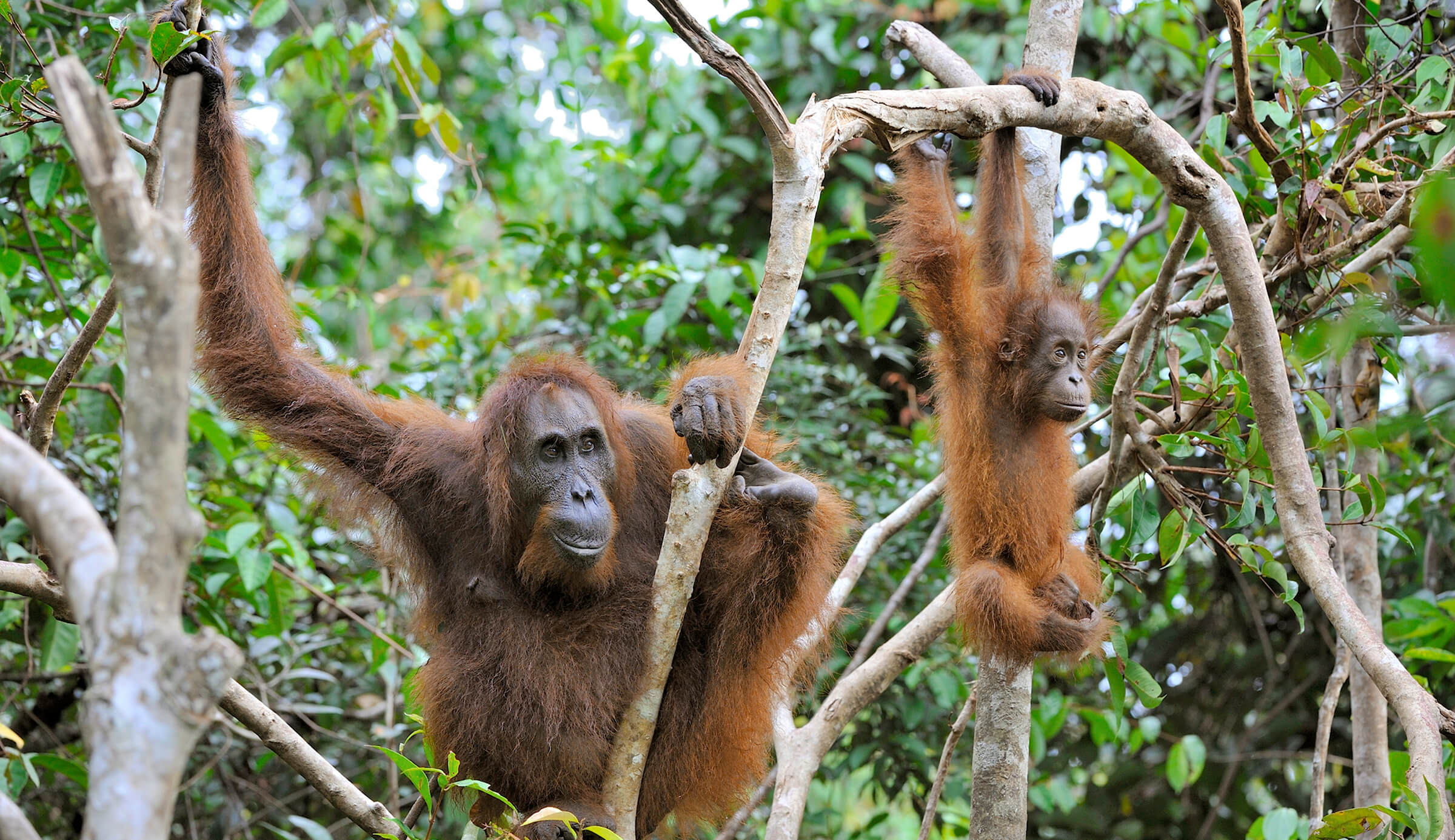 The name orangutan means “people of the forest.” These apes live in tropical and swamp forests on the Southeast Asian islands of Borneo and Sumatra. They are the world’s largest arboreal mammal, and the only great apes in Asia—all other great ape species live in Africa. (Photo by Anup Shah/Getty Images)[/caption] Without predators like clouded leopards, Sumatran tigers, giant pythons, and crocodiles to avoid, orangutans at the Zoo are also quite comfortable on the ground. They spend time in and around rocky caves and man-made “termite mounds” that are often filled with tasty treats for the orangutans to retrieve. In Sumatra, orangutans ignore other primates, but at the Zoo, they often interact with the siamang family that shares their habitat. You might even get eye to eye with an orangutan that’s made itself at home up close to the habitat’s glass. And if you think they’re watching you, you could be right. They might want to show off their newest enrichment item, such as a burlap sack—or they might just want to watch you! [caption id="attachment_138342" align="aligncenter" width="1200"]