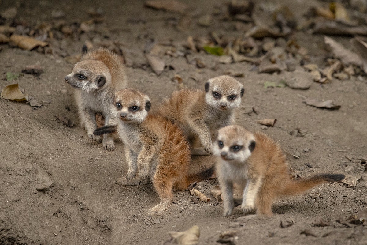 The newest meerkat pups at the San Diego Zoo were born to first-time dam Shaka and raised by sire Bafana and aunts Msizi and Mava.