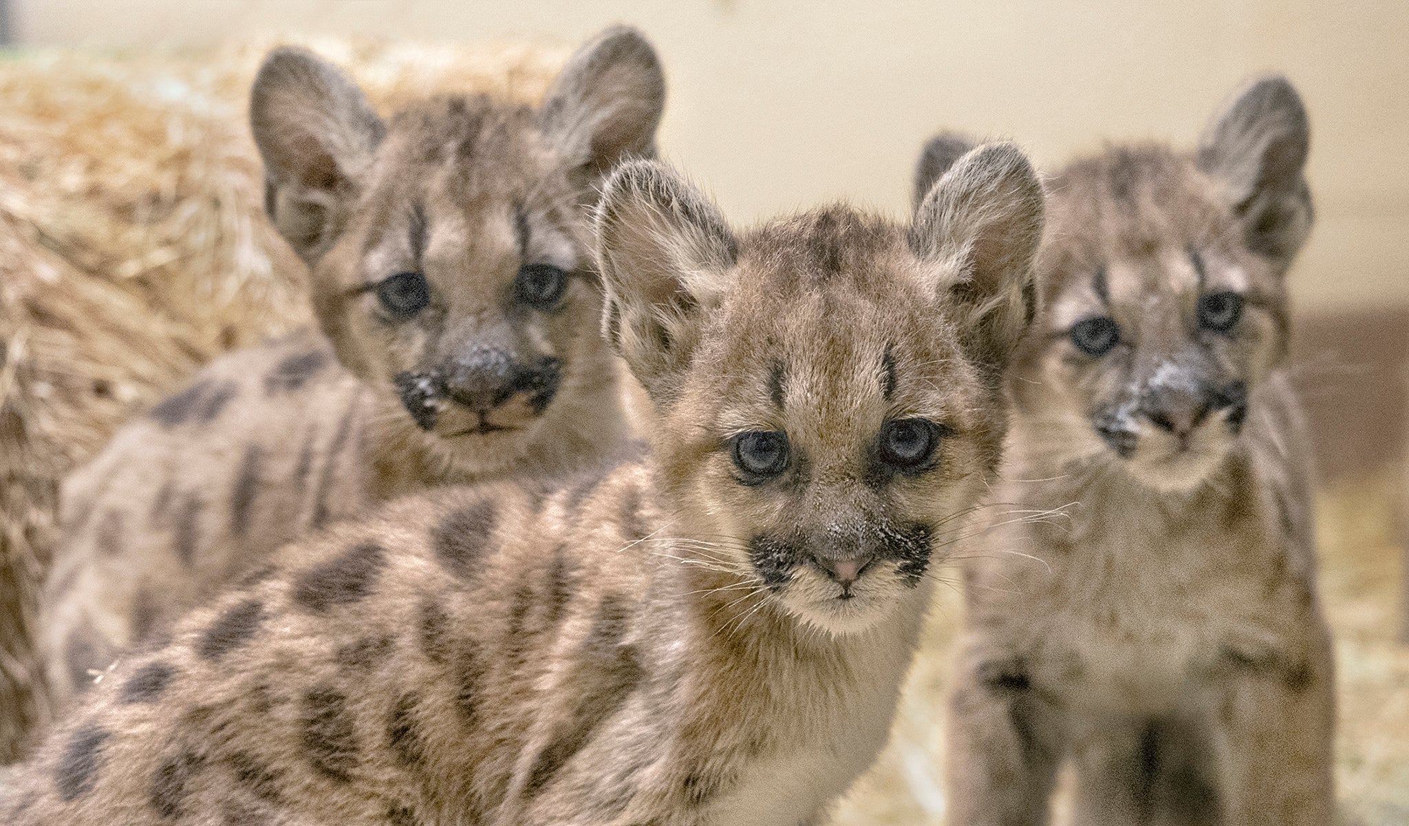 Three orphaned mountain lion cubs are settling in nicely to their new habitat at the Safari Park after they were rescued last year.