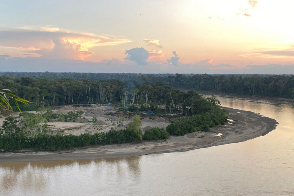 A decade ago, gold prices spiked after the great recession, and a new wave of people came into the Madre de Dios region of the southeast Peruvian Amazon with the intent to mine gold. With a few rudimentary devices and access to the rivers, anyone willing to perform hard labor can mine up to several hundred dollars’ worth of gold a day—a life-changing amount of money, for many families. As gold demand remains steady, it has created an important and continued source of income for many in the Peruvian Amazon. But this is not without environmental and social impacts.