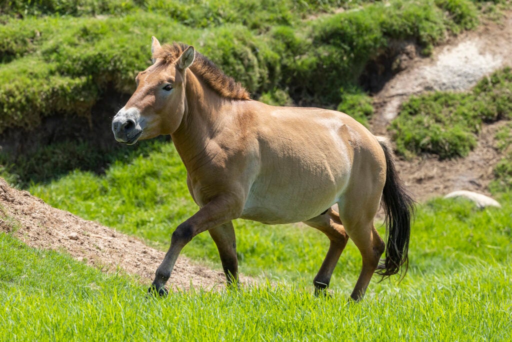 Przewalski’s horses are the closest living relative of domestic horses, although there are a few noticeable differences. Przewalski’s horses are shorter and stockier, with spiky manes.