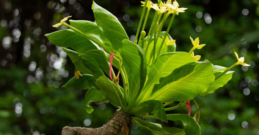Close your eyes and imagine a head of cabbage on top of a miniature coconut tree trunk, and you’ll roughly envision the unusual and endangered ʻālula (AH-lou-lah) Brighamia insignis. Like 80 percent of all plants, the ʻālula depends on pollinators to survive, but there’s one big problem: its pollinator has gone extinct.