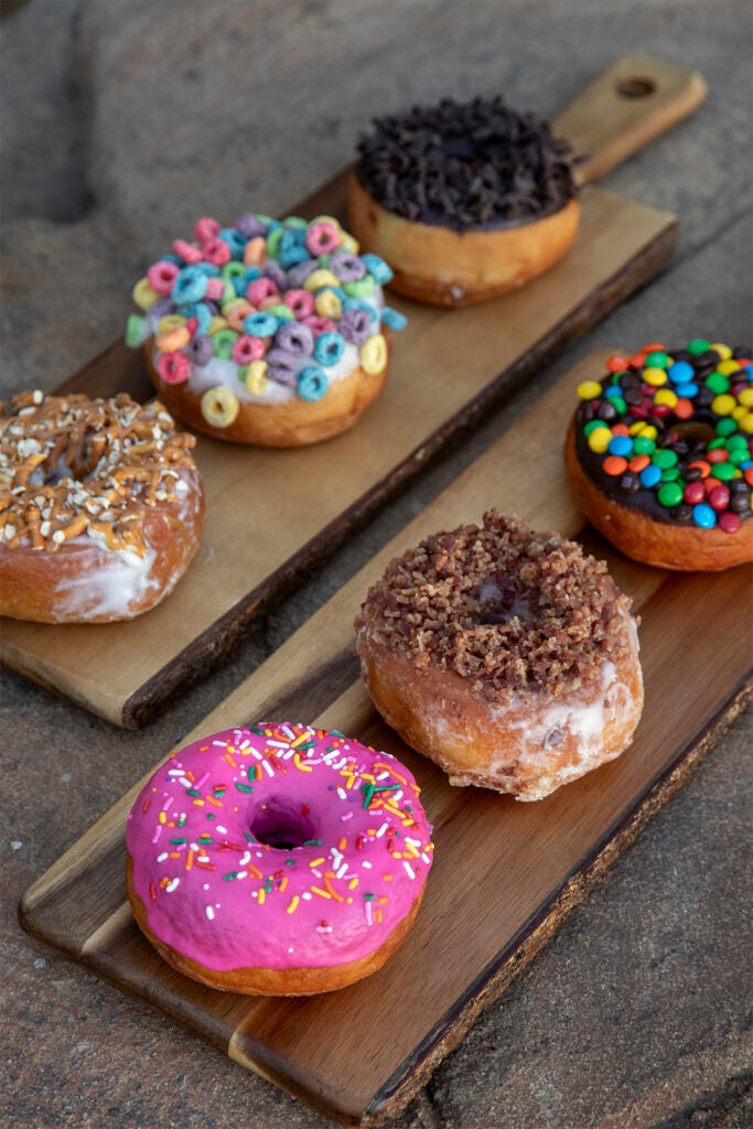 Enjoy classics, including powdered and vanilla glazed, or be bold and dig into fun options like salted caramel pretzel or maple bacon. You can satisfy your sweet tooth with everything from donut holes to a really big donut, so bring your whole herd to share.