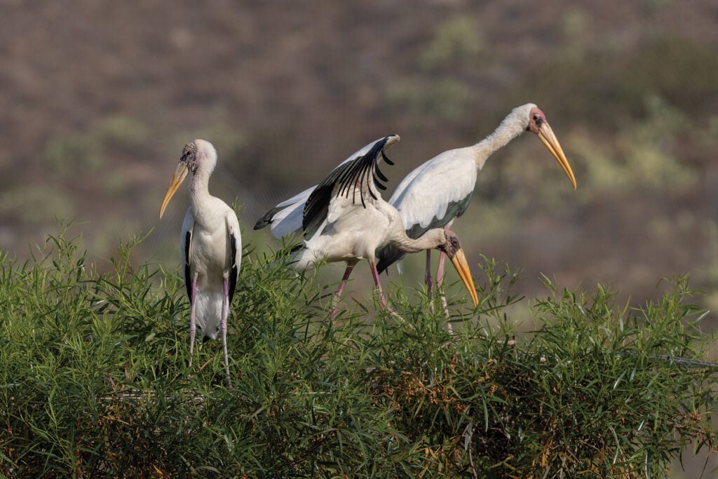 “Just as we in North America have eliminated many of our wetlands, the mangroves that milky storks depend on are being converted for aquaculture, rice cultivation, and industry,” says Jenny Tibbott, a lead wildlife care specialist at the San Diego Zoo Safari Park. That development is squeezing out wilderness areas that are suitable habitat for the storks. The dilemma that these countries and the people who live in these areas face isn’t unique; they are trying to earn a living while, at the same time, protecting their native habitats and wildlife. In some areas, poaching of adult birds, chicks, and eggs is exacerbating the problem. As a result, milky storks are among the most endangered storks in the world.