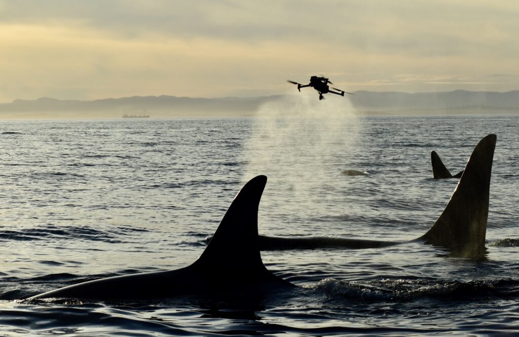 Strict permitting conditions must be met when operating a drone: our experienced pilots are certified by the Federal Aviation Administration, and additional approvals from NOAA allow us to operate a drone near marine wildlife. Further, at the onset of our study, our team submitted video recorded by our drone cameras to experts in killer whale behavior—these experts analyzed the videos and confirmed that while some orcas may be aware of the presence of the drone, neither the drone nor the breath collection disrupts their behavior.