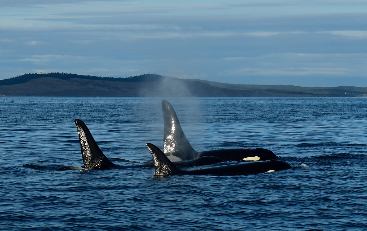 Killer whales (Orcinus orca; also called orcas) are an iconic apex predator and a focus of San Diego Zoo Wildlife Alliance's Oceans Conservation Hub, through which we work to foster thriving marine wildlife, communities, and ecosystems. Southern Resident killer whales live in the Salish Sea, a body of water along the Pacific coast tucked in by the Olympic Peninsula (Washington, USA) and Vancouver Island (British Columbia, Canada). The whales face several threats due to human activity in this region. Coastal and freshwater habitat modification, as well as overfishing, have dwindled the stocks of fish in the Salish Sea—a catastrophic problem for Southern Residents because they are fish specialists, and the abundance of their preferred prey, Chinook salmon, has declined precipitously. Additionally, noise pollution caused by recreational and commercial boat traffic can disrupt orca behavior. And chemical pollutants—generated from industry and agriculture and dumped or drained into the sea—can compromise killer whale reproductive and immune function.