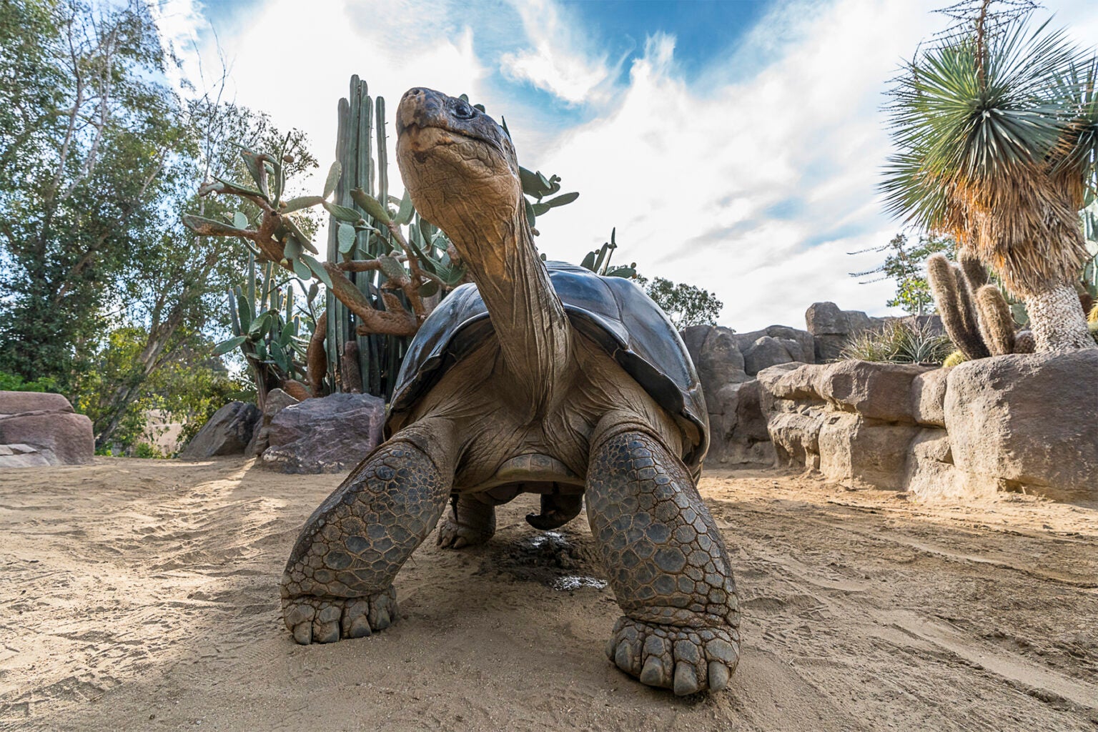 Wallace the Galápagos tortoise has been an active participant in his physical rehabilitation program since 2018. When our wildlife care team noticed that he was having difficulty moving around, Dr. Brenner got to work on diagnosing the problem: Wallace had developed arthritis in multiple joints—an unsurprising finding in an animal that is approximately 100 years old and is supporting about 500 pounds of body weight on his legs.
