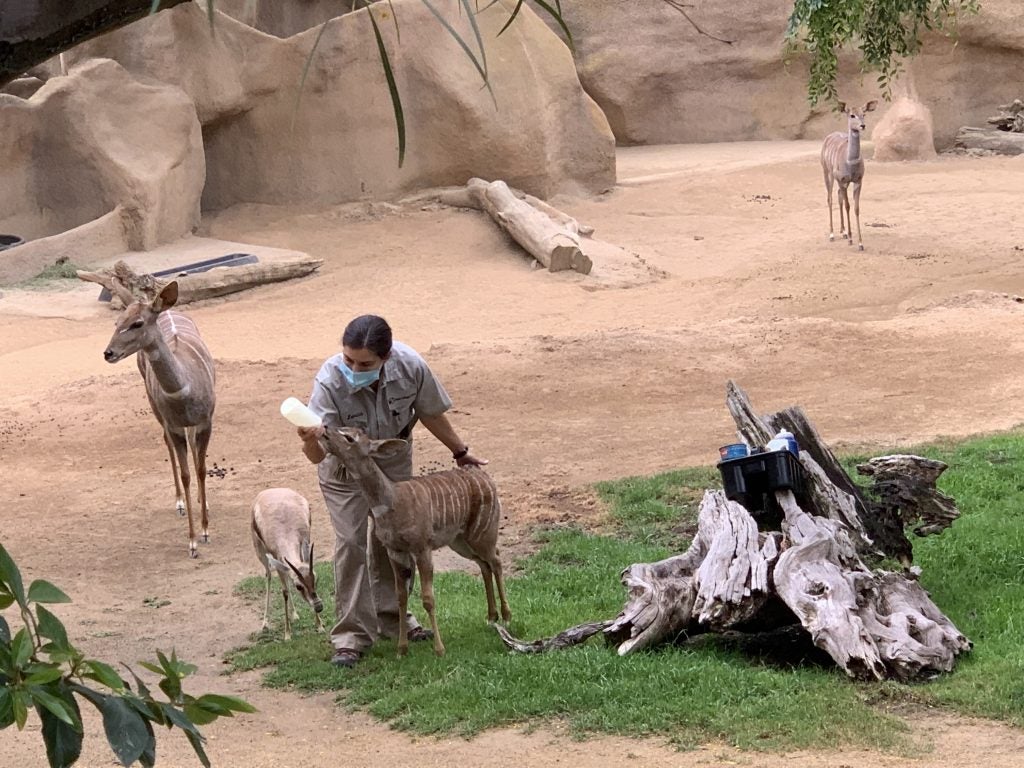 The San Diego Zoo’s dedication to conservation is apparent in every position held by the employees, including Mrs. Bohy’s. She has the incredible job of helping wildlife populations grow and flourish by nurturing neonatal individuals into healthy adults. Through ensuring the mammalian wildlife she cares for has the best chance at life possible, she actively increases the total populations of their species, as well as their genetic diversity. Genetic diversity is a key factor in the stability of a species as it provides variation between the individuals so the population as a whole can more easily adapt to new threats. An increased stability means that the species has a higher chance of thriving and growing in number. This is especially important with endangered species like the Speke's gazelle, whose population is decreasing at a worrying pace. Mrs. Bohy helps with the breeding programs at the Zoo for this species and many others, ensuring their success by caring for any newborn mammals who need a helping hand. She even helps other zoos with their breeding programs by participating in an exchange of information between different NACUs about the care of a variety of neonates to ensure that wildlife across the globe have every opportunity to grow up strong and healthy.