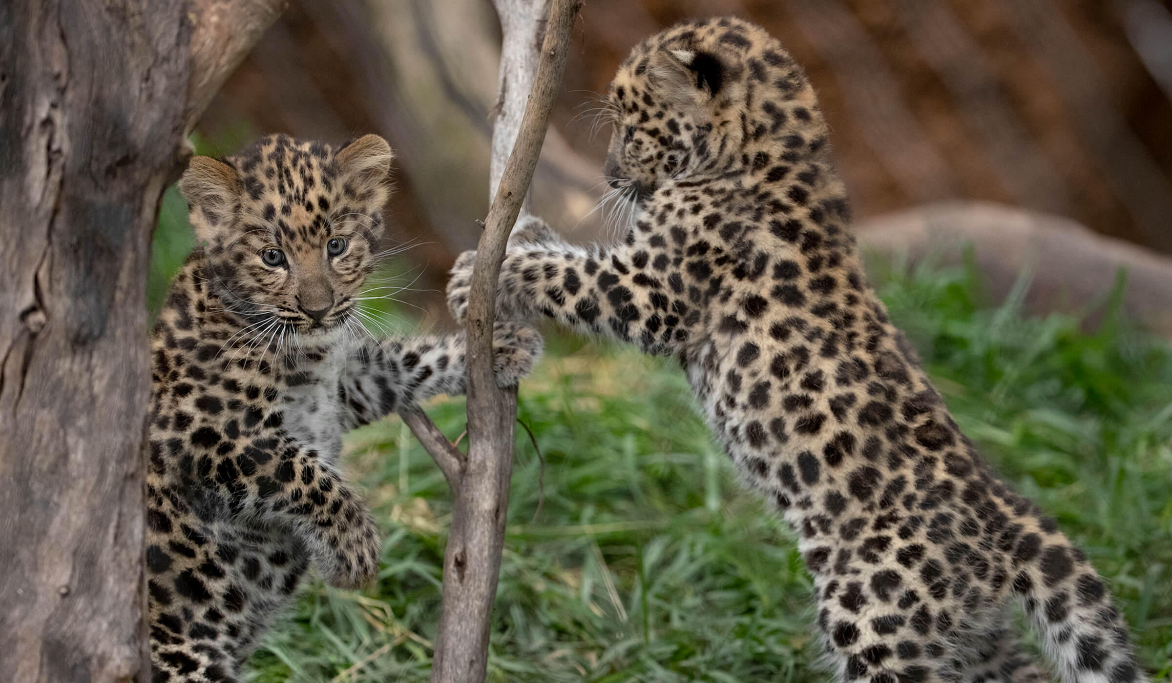 The month of April brought the squeaks and mews of Amur leopard cubs to the San Diego Zoo. This was mom Satka’s second litter, and she was “rocking” it! “While she’s still very protective, her first-time mom jitters have subsided—but she’s still very much alert,” said Kelly Murphy, senior wildife care specialist. As the result of a poll of the Zoo's Facebook fans, the cubs have been named Lev (meaning "lion") and Tuman (meaning "fog"). Livestreaming cameras throughout the living spaces give staff a way to monitor Satka and her cubs. Kelly shared that as the cubs have become more mobile, Satka has had her paws full. “We review footage every day, and I catch myself laughing out loud watching her with the cubs,” she said. “She’ll be in one room, and a cub takes off toward the door. Satka gets up to bring it back. And as she’s dealing with that cub, the other cub has wandered halfway out.” Kelly noted that “Overall, Satka’s allowing them the opportunity to explore, but being protective—it’s a good balance.” [caption id="attachment_136786" align="aligncenter" width="1400"] SPOT ON!