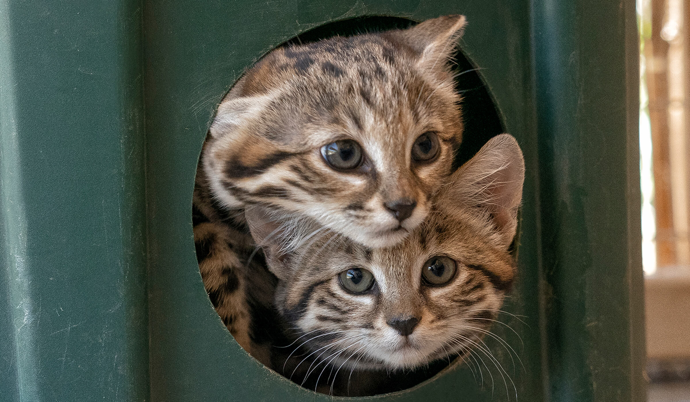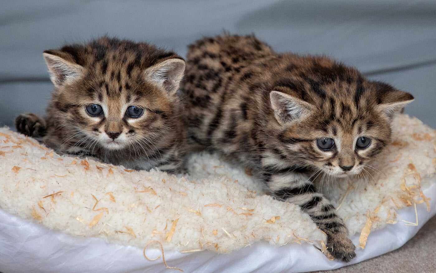 On April 28, 2020, the staff of our Carnivore Breeding Center near the Safari Park watched in wonder as Arwen, a black-footed cat, gave birth. “She started showing signs of labor around noon,” said Dion Rice, senior wildlife care specialist. “The first kitten, a male, was born about an hour after that—and after another hour, Arwen delivered a little female.” Cameras in the den and the yard give the staff a chance to marvel at Arwen’s mothering skills. [caption id="attachment_136780" align="aligncenter" width="1400"] DOUBLE DELIGHT