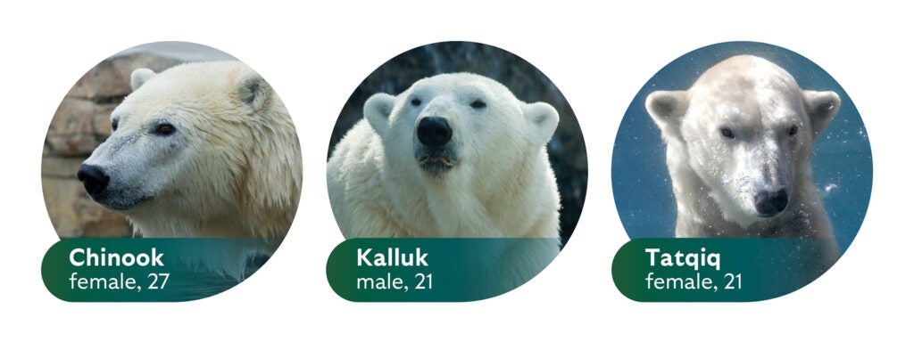 The three polar bears we care for—Chinook, Kalluk, and Tatqiq—were rescued as orphaned cubs, and wouldn’t have survived without a mother to guide, protect, and feed them. They’re thriving here in San Diego as important ambassadors for their species, and are directly contributing to conservation efforts for polar bears.