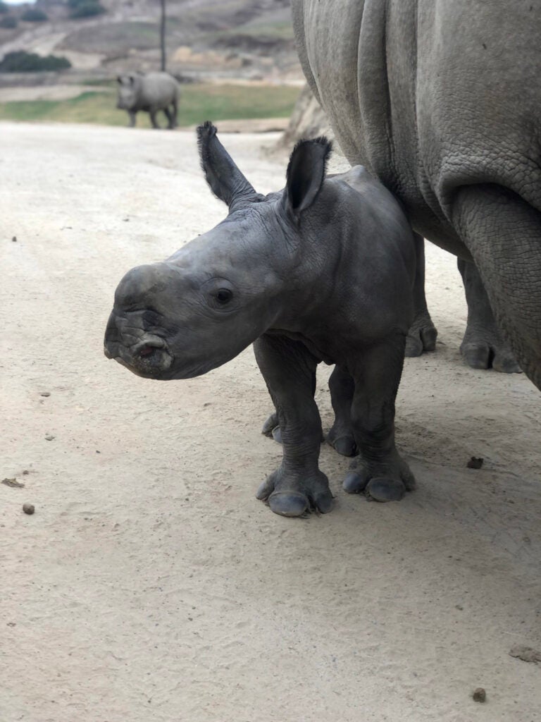 During a rhino birth at the Safari Park, there is usually one to two wildlife care specialists observing. The purpose of watching the birth is extremely important. We record the progression of labor, presentation of birth and watch the newborn calf to make sure nothing goes astray (the information gathered also helps as a teaching tool for newer staff). The Northern White Rhino project also takes this data and uses it for a baseline of future dams and calves.