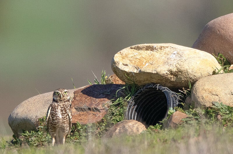 The first ingredient is supplied by our partners. Over the past 10 years, San Diego Zoo Wildlife Alliance and our working group collaborators have identified protected areas in the county that can provide owl habitat. Some of our partners, like the California Department of Fish and Wildlife and San Diego Habitat Conservancy, own and manage land for the purpose of providing protected habitat for native wildlife for generations to come. We have worked closely with these entities to prepare their lands to receive owls. They use cattle grazing and mowing to keep the grasses short, and create cover piles made of rocks or brush to help the ground squirrels disperse into new areas, creating more burrows for the owls. Our partners have allowed us to install artificial burrows that are part of the translocation process, and conduct maintenance on these burrows annually.